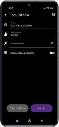 - Stlačením tlačidla Zobraziť QR kód sa zobrazí QR kód s prihlasovacími údajmi na rýchle pripojenie ďalších mobilných zariadení.