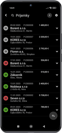 - V zozname príjemiek je možné vyhľadávať podľa názvu alebo čísla príjemky.