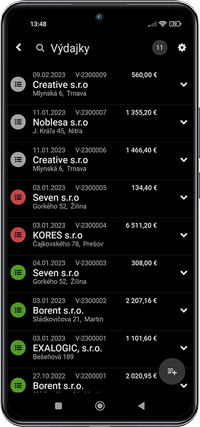 - V zozname výdajok je možné vyhľadávať podľa názvu alebo čísla výdajky.