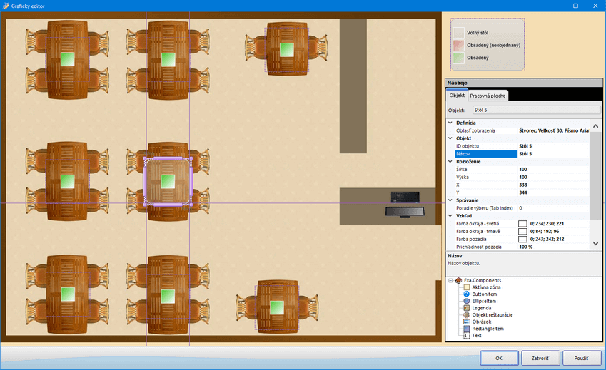 - Grafický prehľad stolov môže definovať len používateľ s príznakom Administrátor. Viac informácií získate v téme Používatelia.