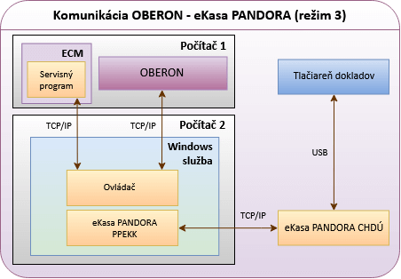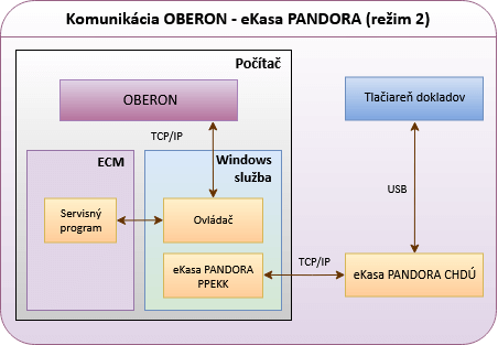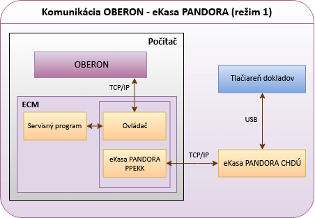 Obrázok č. 1: Režimy komunikácie medzi OBERON-om a fiškálnou tlačiarňou eKasa PANDORA