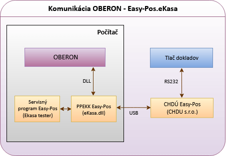 Pomocou návodu a servisného programu Easy-Pos (Ekasa tester) nahrajte do zariadenia identifikačné a autentifikačné údaje a vykonajte ostatné nastavenia komunikácie. OBERON komunikuje s PPEKK priamo.