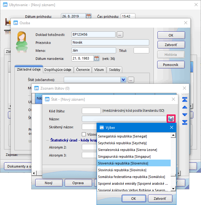 Aby čítačka korektne načítala údaj o štáte, musí byť daný štát vybraný do zoznamu štátov ešte pred samotným načítaním údajov z dokladu (vo formulári Zoznam štátov).