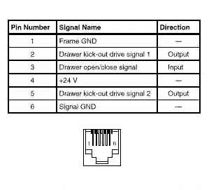 - Pokladničná zásuvka sa k fiškálnemu zariadeniu, resp. k registračnej pokladnici pripája pomocou konektora RJ11 (štandardné zapojenie konektora RJ11 na ovládanie pokladničných zásuviek je uvedené na Obrázku č. 2).
