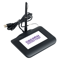 - V systéme OBERON je zariadenie určené na podpisovanie dokumentov v evidenciách, ktoré umožňujú pri jednotlivých záznamoch evidovať prílohy (obsahujú tlačidlo Prílohy): Výdajky, Príjemky, Objednávky prijaté, Kniha pohľadávok, Kniha záväzkov, Objednávky vydané, Dokumenty a výkazy pracovníkov, Kniha rezervácií, Kniha ubytovaných, Hotelové účty, Obchodní partneri, Evidencia reklamácií a servisu, Evidencia zápočtov faktúr... Do vygenerovaného tlačového výstupu (vo formáte PDF) sa po podpise na digitálnej podpisovej podložke vloží podpis zákazníka a zároveň sa dokument digitálne podpíše. Takýto dokument sa automaticky uloží ako príloha k danému záznamu v danej evidencii, čím sa automaticky stáva súčasťou aj elektronického archívu. Používanie podpisovej podložky umožní znížiť, prípadne úplne odbúrať listinnú (papierovú) formu týchto dokladov. Napr. v stavebninách pri výdaji materiálu na výdajku zákazník namiesto vytlačenej výdajky podpíše výdajku digitálne na podpisovej podložke.