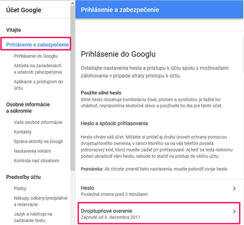 Prihlasovacie heslo: heslo aplikácie k službe Google