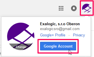 1. Prihláste sa do svojho účtu Google. Stlačte obrázok profilového obrázka a následne stlačte tlačidlo Google Account (Spravovať účet Google).