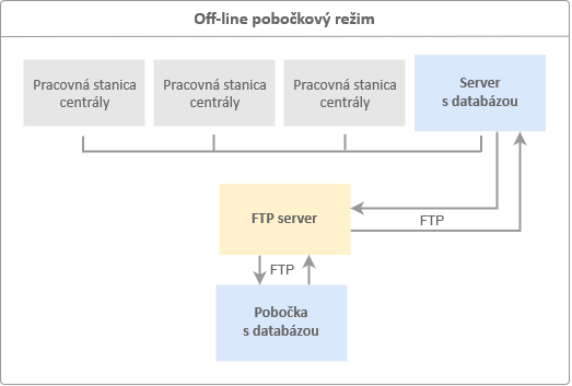 Obrázok č. 2: Pobočkový režim s off-line spôsobom komunikácie (off-line transporty údajov)