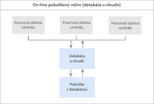 Obrázok č. 1: Pobočkový režim s on-line spôsobom komunikácie s databázou v cloude (vľavo) a s databázou v centrále (vpravo)