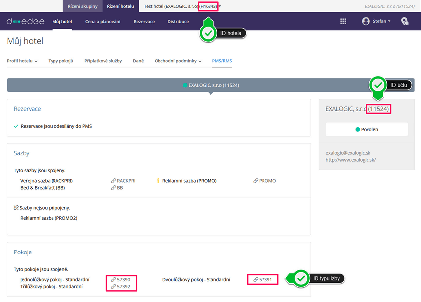 Obrázok č. 1: ID ubytovacieho zariadenia (hotela), ID účtu a ID typu izby v D-EDGE