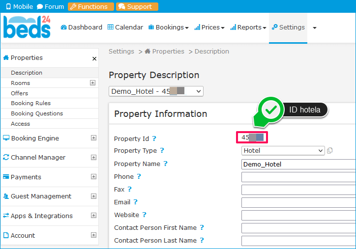 Obrázok č. 1: ID hotela (Property ID) v Beds24