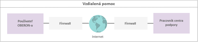 Na nasledujúcom obrázku je zobrazený princíp fungovania vzdialenej pomoci. Používateľ požiada o vzdialenú pomoc - požiadavka o pomoc prejde používateľovou bránou firewall, putuje cez internet až k poskytovateľovi vzdialenej pomoci. Ten požiadavku prevezme a spojí sa s počítačom používateľa - vidí obrazovku, môže pracovať s myšou a klávesnicou používateľa OBERON-u.