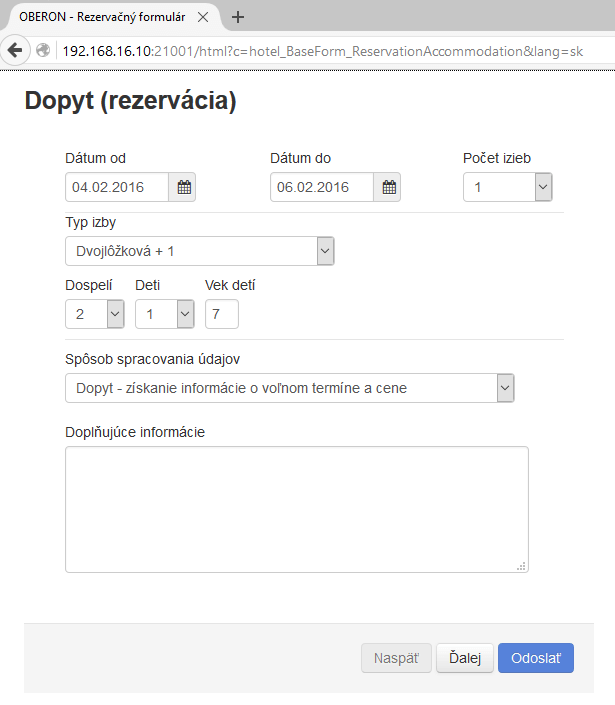 Obrázok č. 1: Formulár rezervačného formulára ubytovania