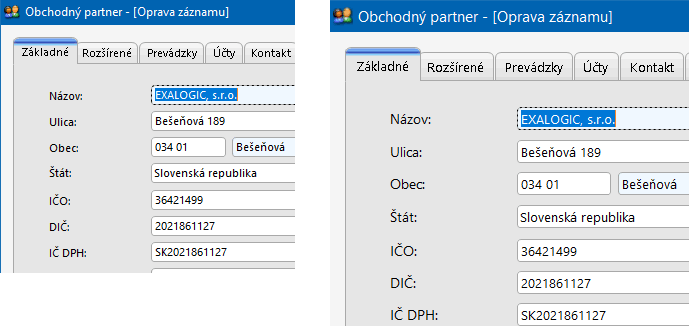 Obrázok č. 1: Štandardná veľkosť formulára (vľavo) a zväčšená veľkosť formulára na 125 % (vpravo)