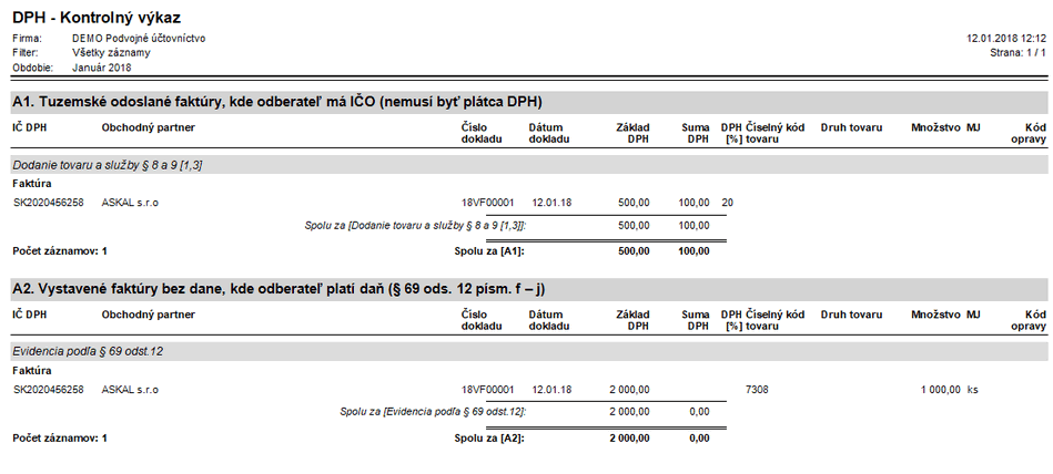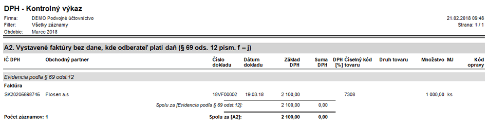 Obrázok č. 2: Kontrolný výkaz firmy DEMO