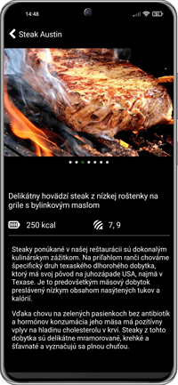 - Text, ktorý sa zobrazuje pri danej položke v rámci podrobností, ponúka gastroprevádzkam možnosť predstaviť zákazníkovi (hosťovi) dané jedlo, resp. nápoj tak, aby v ňom vzbudil záujem a zvedavosť ho ochutnať. Môže obsahovať informáciu o pôvode a kvalite surovín, spôsobe prípravy a servírovania, vyzdvihnúť výnimočnosť daného jedla a nápoja, jeho najviac cenené charakteristiky, či ponúknuť prípadnú anekdotu či inú kulinársku zápletku spájanú s daným jedlom či nápojom.
