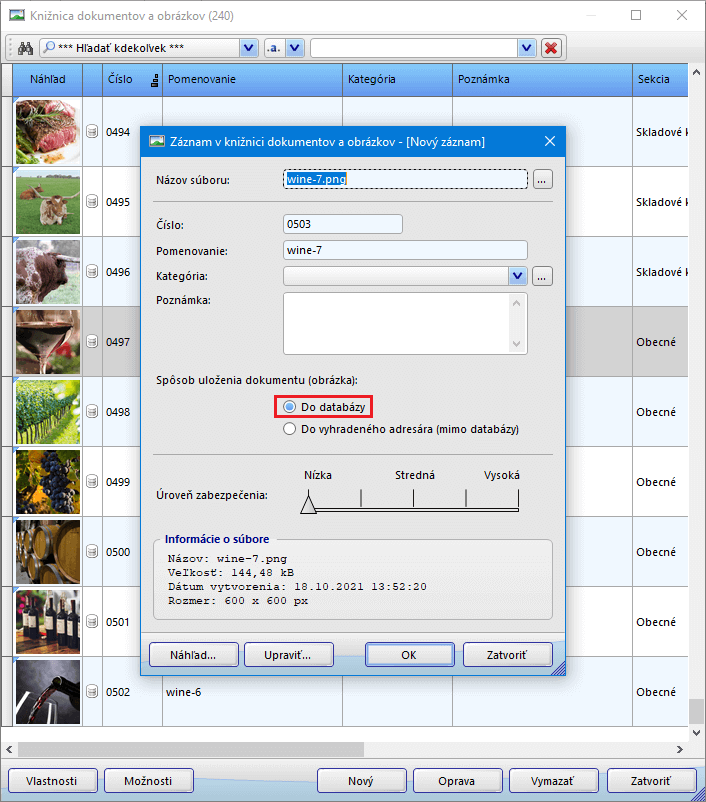- Stlačením tlačidla OK uložte obrázok najprv do knižnice a následne ho pridajte ku skladovej karte.