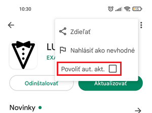 Obrázok č. 3: Zakázanie automatickej aktualizácie aplikácie LUKUL v aplikácii Obchod Play (odčiarknutím políčka)