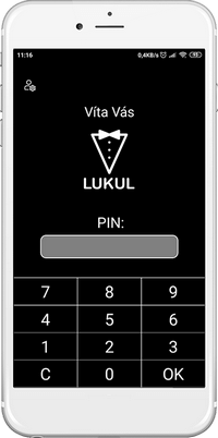 - Obsluha nasníma mobilným zariadením QR kód na prihlásenie do lokálnej WiFi siete. Následne nasníma QR kód na stiahnutie aplikácie (môže využiť QR kód vygenerovaný pomocou Sprievodcu QR kódy stolov a aplikácie LUKUL). Po jej nainštalovaní a otvorení nasníma QR kód na automatické nastavenie komunikácie pre režim LUKUL - mobilný čašník. Následne sa môže prihlásiť do aplikácie zadaním PIN-u. Viac informácií o prihlasovaní do aplikácie získate v téme Aplikácia LUKUL.
