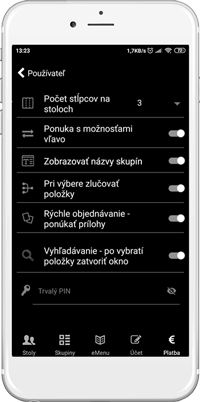 - Mobilný čašník - pre obsluhu na objednávanie jedál a nápojov od stola zákazníka,