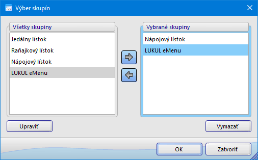 Obrázok č. 3: Nastavenie jednotného lístka pre jedlá a nápoje LUKUL eMenu