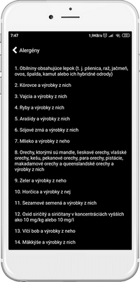 Obrázok č. 2: Podrobnosti o položke a zoznam alergénov