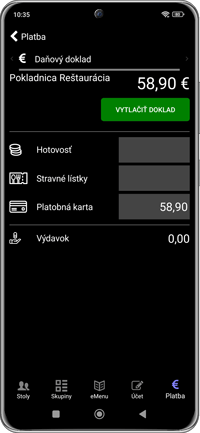 - Viac informácií o platobnom termináli získate v téme Platobný terminál GP tom.