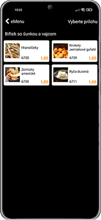 Obrázok č. 1: Vybraná položka Biftek so šunkou a vajcom (vľavo) a automaticky zobrazené prílohy (vpravo)