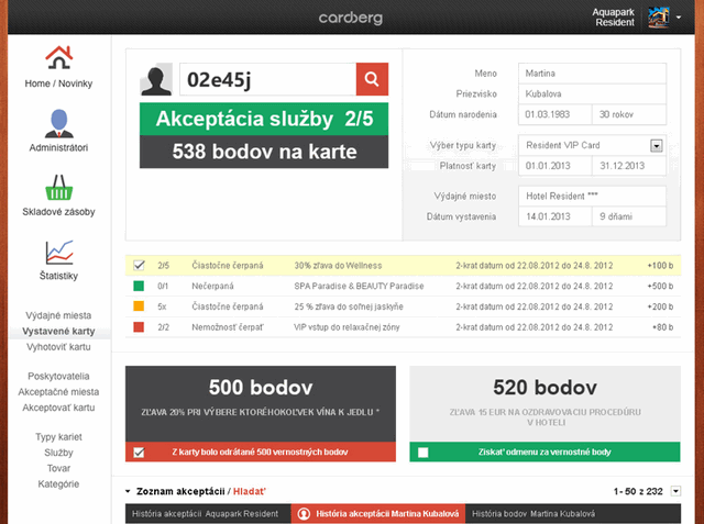 Obrázok č. 1: Vernostný systém Cardberg - obsahuje tak webové rozhranie pre zákazníka, ako aj administračné rozhranie