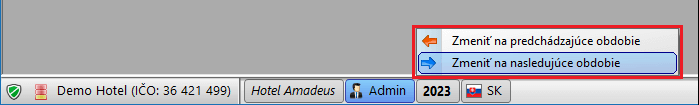 - V systémovom paneli kliknite pravým tlačidlom myši na aktuálny rok a vyberte položku Zmeniť na predchádzajúce/nasledujúce obdobie.