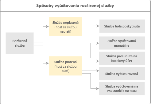 - V prípade, že rozšírená služba bola čerpaná v rámci pobytového balíka a hosť za ňu neplatí, služba sa len pomocou tlačidla Možnosti alebo v kontextovej ponuke označí za poskytnutú (nie je ju potrebné vyúčtovať).