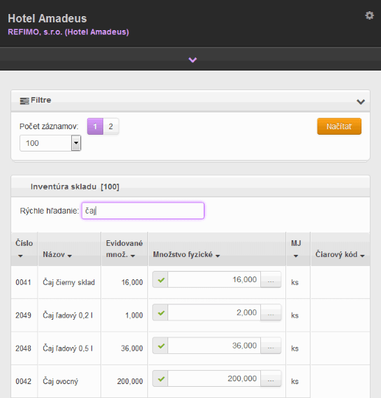 - V právach používateľov je možné povoliť, resp. nepovoliť zobrazovanie evidovaných množstiev pri inventúre skladu (napr. čašník nebude vidieť evidované množstvo).