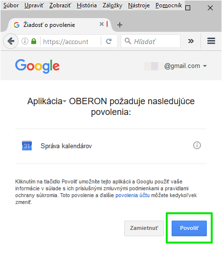- Zobrazí sa formulár (Obrázok č. 2), stlačte tlačidlo Povoliť.