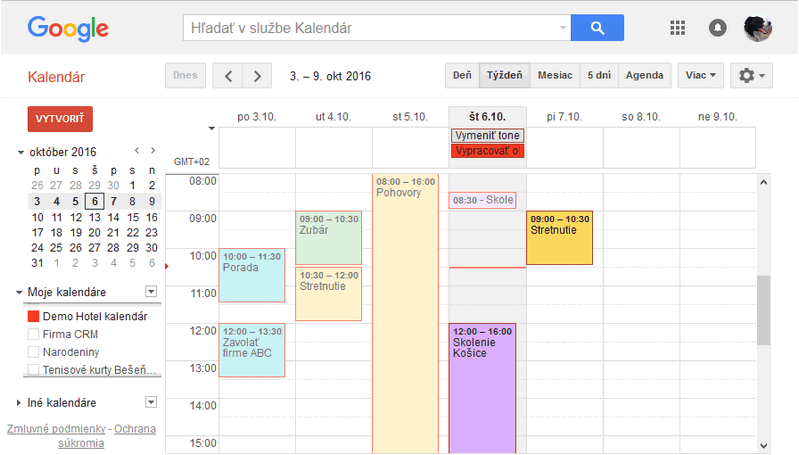 - úlohy a udalosti vytvorené alebo zmenené v module CRM a registratúra automaticky synchronizujú s Kalendárom Google,