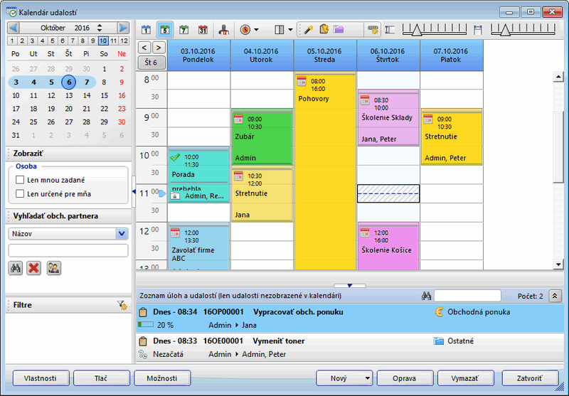 Obrázok č. 3: Kalendár udalostí v OBERON-e