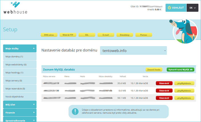 - Database password: (zadáva sa prihlasovacie heslo do databázy)