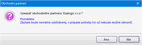 - Je potrebné mať na zreteli, že pri vymazávaní záznamov sa záznamy vlastne neodstránia, len sa im nastaví príznak, že boli vymazané. Záznam, ktorý bol odstránený omylom, je možné obnoviť po stlačení tlačidla Možnosti, Obnoviť vymazaný záznam.
