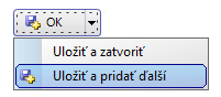 - Na zrýchlenie pridávania viacerých položiek na doklad je možné zmeniť funkcionalitu tlačidla OK, ktoré slúži na potvrdenie položky pridávanej na doklad. Funkcia Uložiť a pridať ďalší po stlačení tlačidla OK pridá položku na doklad, pričom zoznam skladových kariet zostane otvorený na výber ďalšej položky - nie je potrebné znovu stláčať tlačidlo Nový.